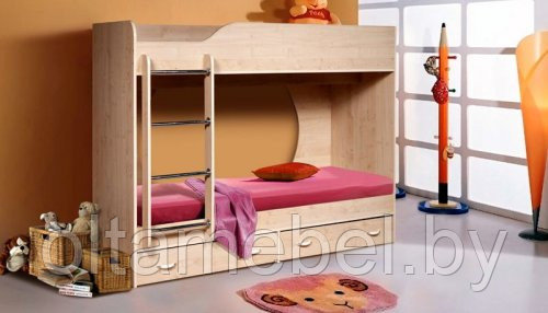 Кровать «Крепыш–01» изготовлена из ламинированного ДСП и обработана ПВХ кромкой. Она не занимает много места и является практичным решением для детской комнаты, экономя полезное пространство. А под нижним спальным местом размещены два объемных выдвижных ящика, что позволяет использовать занятое кроватью пространство на все 100%.
